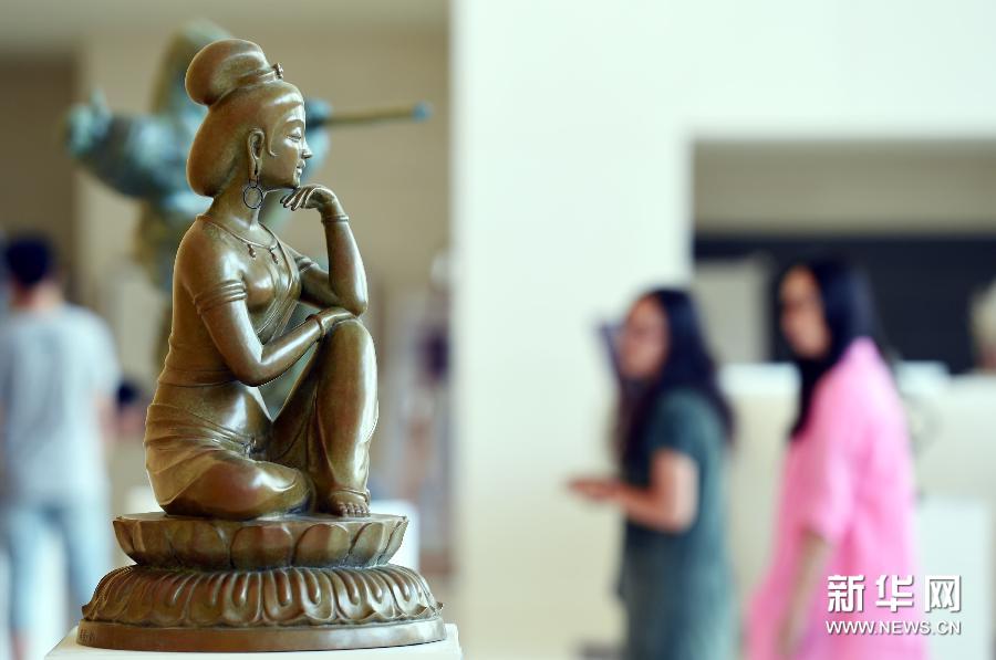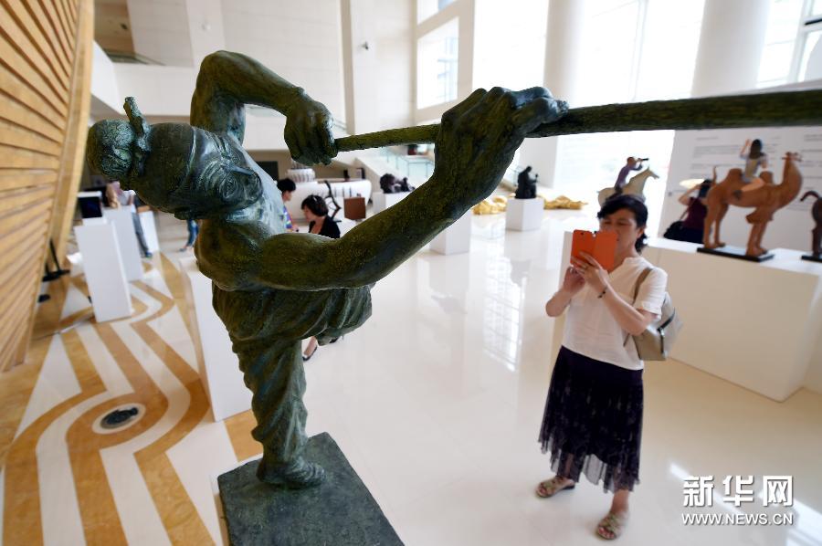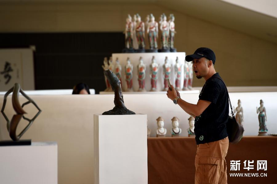 8月17日,來(lái)自韓國(guó)的16位雕塑家、美術(shù)評(píng)論家和來(lái)自中國(guó)陜西、青海、新疆、吉林等省區(qū)的52位雕塑家相聚甘肅蘭州,參加“絲路之光2015蘭州·中韓雕塑邀請(qǐng)展”。據(jù)了解,展覽展出的作品共有65件,均以古今絲綢之路文化為主題。新華網(wǎng)圖片 范培珅