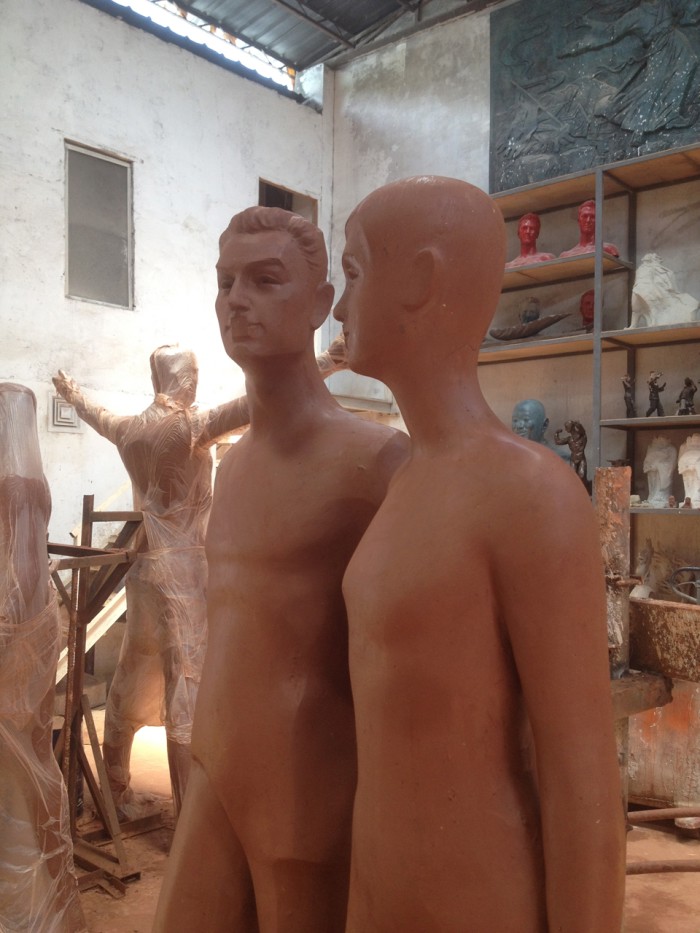 雕塑名稱:《我想和你聊一聊》、《擁抱》