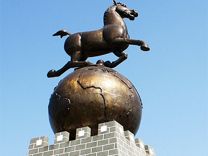 鋼架做水條/進(jìn)烤爐失蠟/灌銅水/出爐打磨表面處理